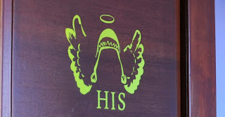Naturalmente, anche l'indicazione “HIS” e “HER” per i due diversi bagni ha il suo bravo tocco angelico.