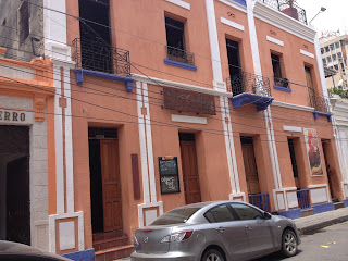 Eccoci sprofondati nell' ennesima rilettura de "Le vene aperte dell'America Latina", proprio delle pagine dove il grande Eduardo Galeano racconta le nefandezze degli sfruttatori cafeteri della catena "Juan Vàldez" di cui siamo, lo testimonia la foto, incoerenti avventori .La strada principale condivide lo stretto marciapiede con le bancarelle colorate di un mercatino. Ci si fa largo a fatica fra stoffe, frutta e verdura, chincaglieria assortita, pigiati fra le vetrine e la carreggiata in cui passano auto, bus e motorette.